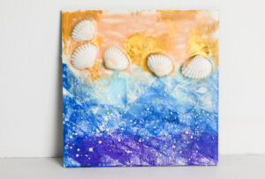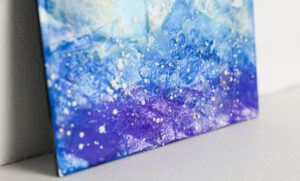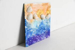 ‘Sunset Below the Ocean’ is a captivating encaustic art piece that explores the mysterious beauty of the ocean’s depths that could also be a sunset. The artist employs a rich palette of blues, purples, and hints of gold to create an abstract representation of underwater landscapes. The layered wax technique adds depth and intrigue, inviting viewers to interpret the piece in their own way.