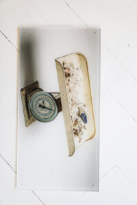 This conceptual piece portrays the concept of deep ties to the ocean of coastal people- born of and measured on an infant scale is ocean detritus.