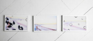Through one- if not several- layers of glass, carefully scattered seashells, salt water droplets,  photos modified through layers of filters and backlit by an ipad, and the extra layer of photographing an original photo onscreen to produce another original photo, these artworks highlight the need to see and know through layers cloaking reality.