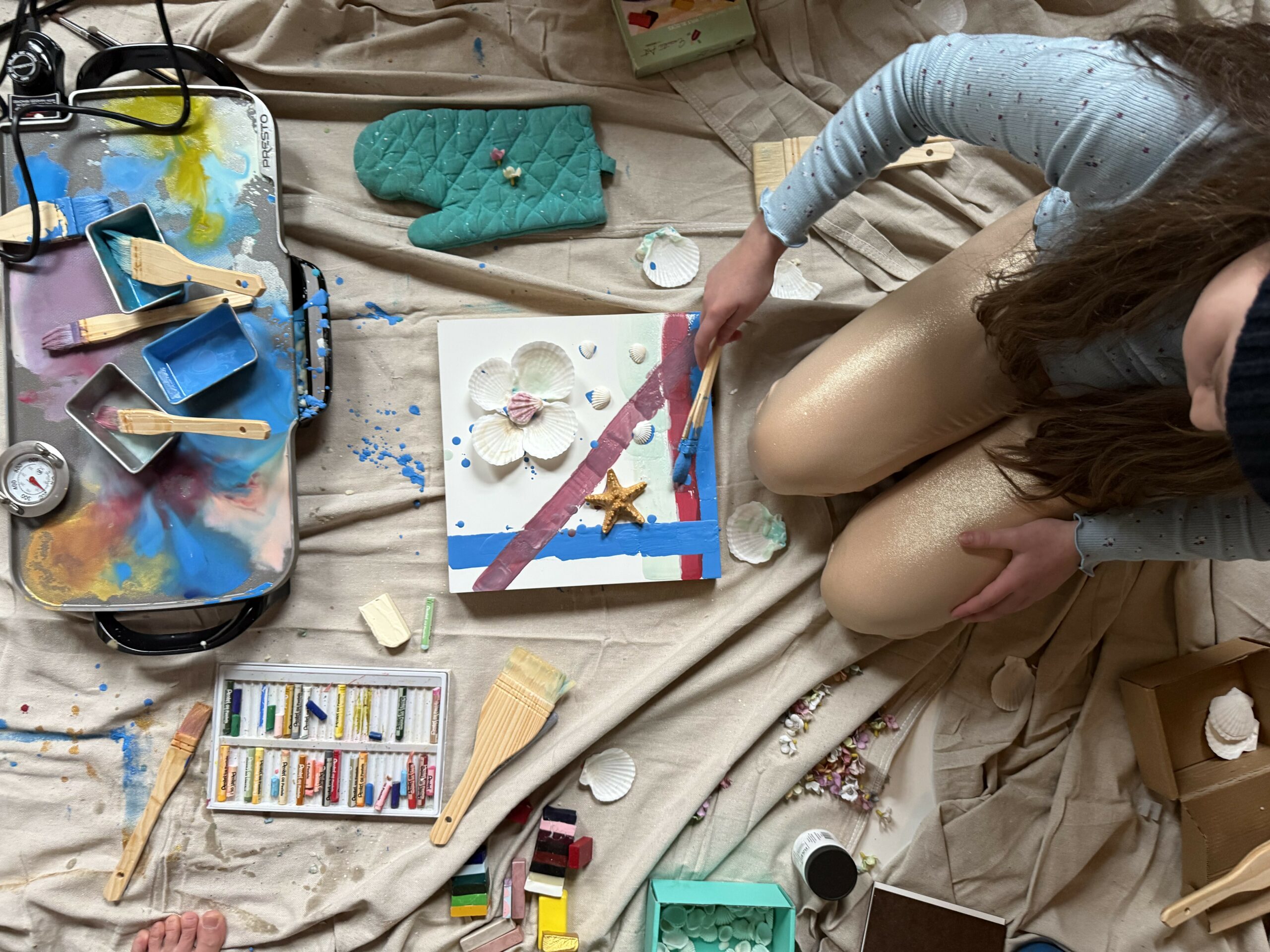 Ceci translates her fervor for the beach and all things ocean related into stunning encaustic art. Growing up the daughter of a photographer and art historian, she has spent countless hours absorbing the aesthetic of Old Master painters in museums and discovered her own place in a more contemporary media, learning to create pieces that resonate with emotion and vibrancy. Her work is a testament to the power of art to evoke the spirit of the sea and sky.